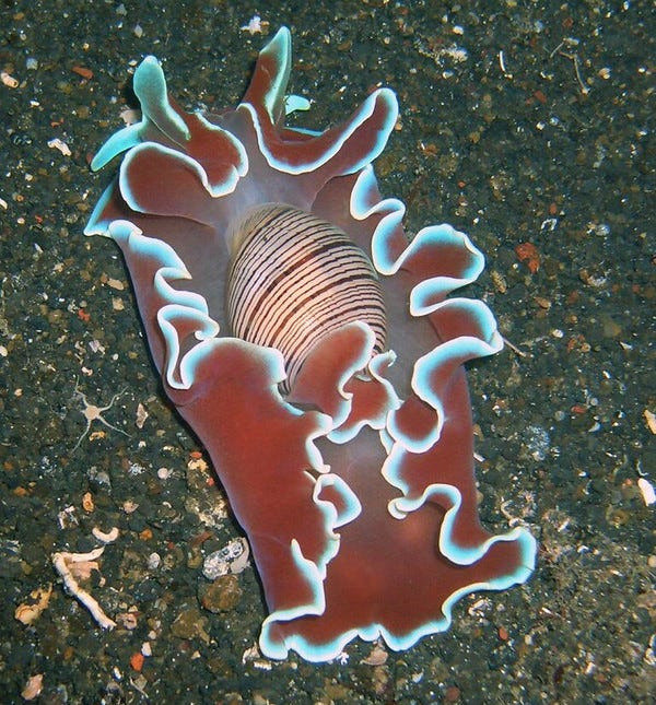 And the animals response for the creation of these little shells - specifically, bubble snails from the family Aplustridae for the purposes of this post - some of them look pretty amazing. But only if you see them alive, underwater, of course.