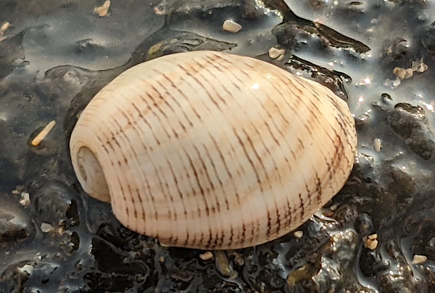 We had an abundance of Eastern Mudsnails where I grew up in coastal Connecticut, USA so by contrast I find these bubble snail shells quite lovely. Not to bad mouth our local snail though, as perhaps as unappealing their shell is, they are very interesting little dudes to watch do their thing in the mudflats.